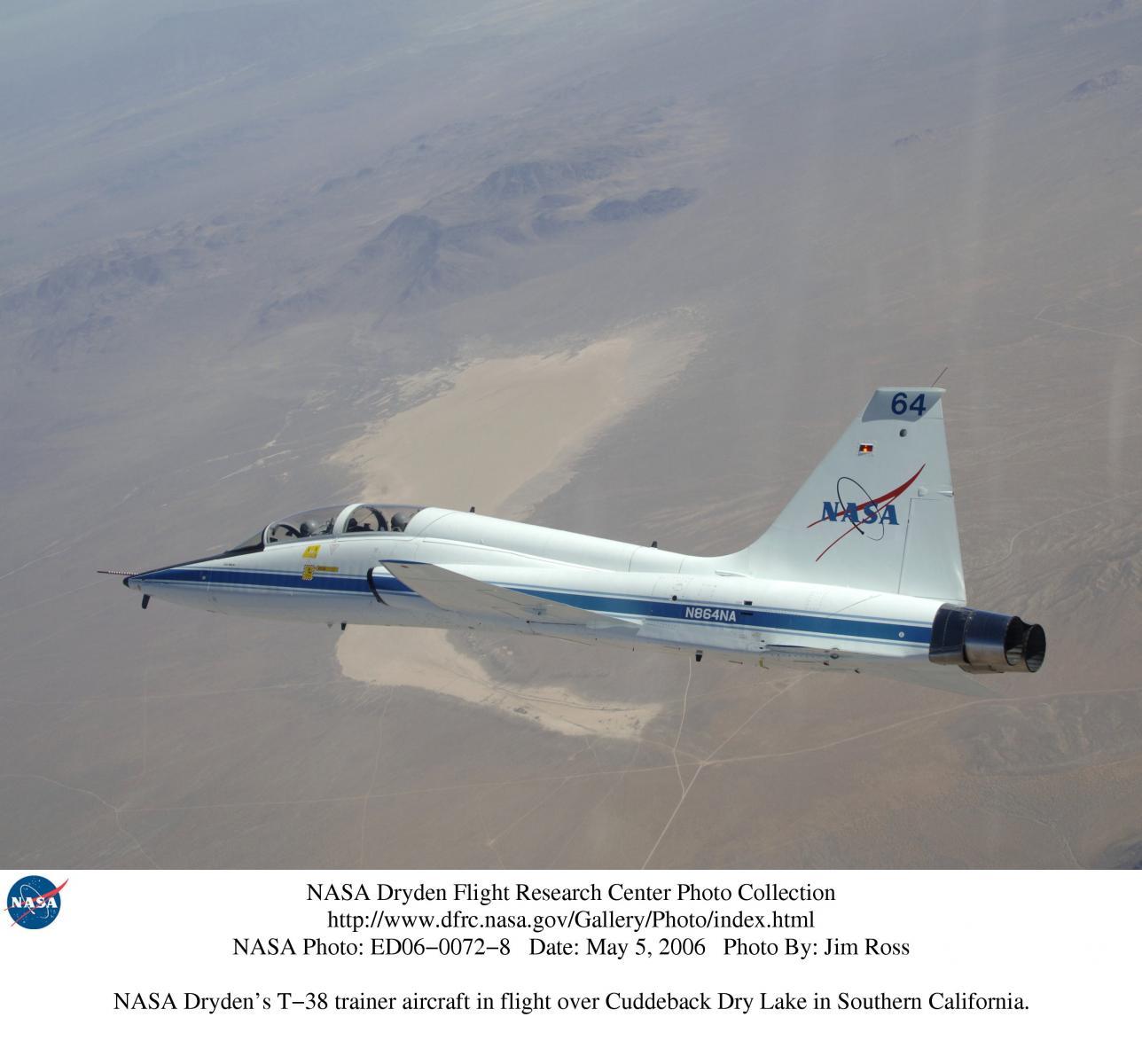 Addestratore T-38 Talon (NASA) in volo su Cuddeback Dry Lake, California.