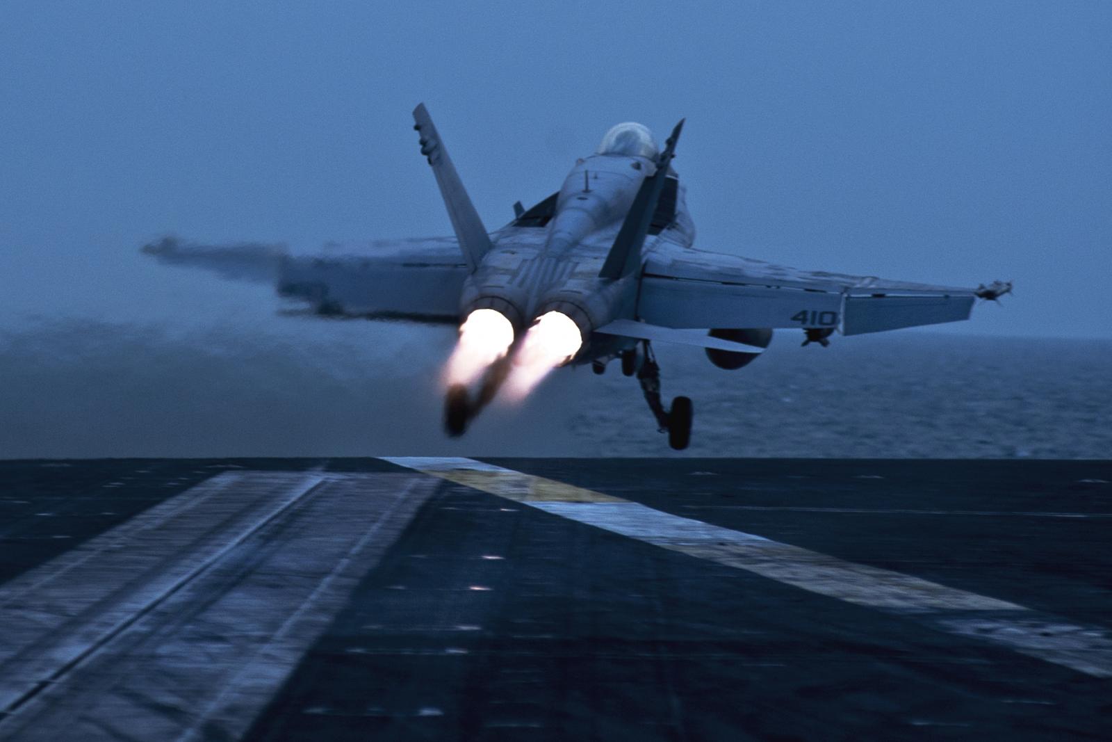 n F/A-18C Hornet assigned to Strike Fighter Squadron 192 launches from the aircraft carrier USS John C. Stennis in the Arabian Gulf, Nov. 21, 2011. The John C. Stennis is conducting maritime security operations and support missions as part of Operation Enduring Freedom and New Dawn. U.S. Navy photo by Petty Officer 3rd Class Benjamin Crossley