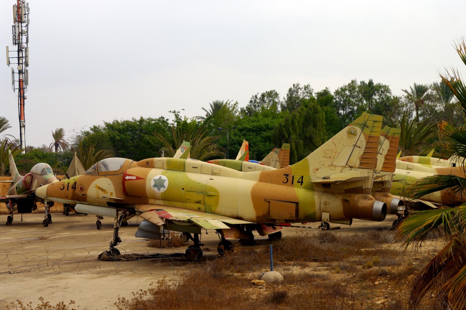 Ce n'è una piazzola piena, tutti modificati con i famosi tubi di stufa anti-Strela, applicati in fretta e furia nel 1973 durante la guerra del Kippur per rdurre le perdite dovute a questi missili infrarossi di prima generazione, attirandoli verso queste estensioni invece che contro il motore e, data la piccola carica, sufficienti a evitare danni seri nella maggior parte dei casi