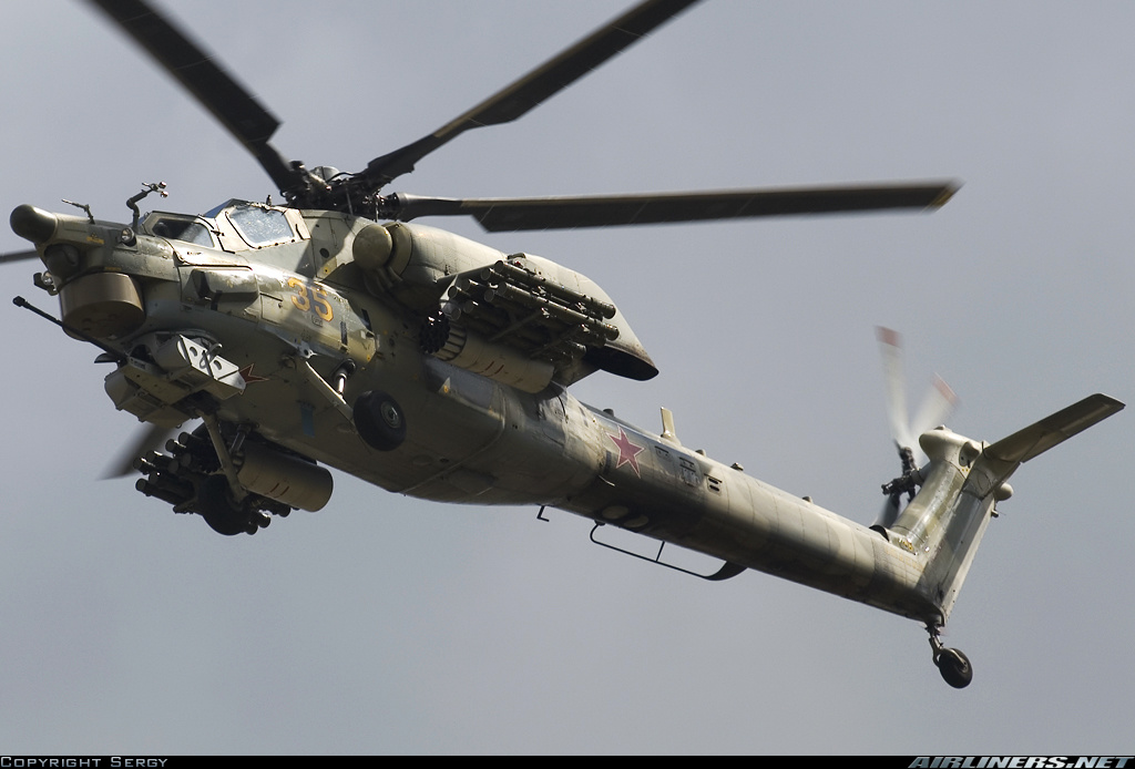Un elicottero d'attacco russo Mil Mi-28 Havoc, in tutta il suo aspetto minaccioso.