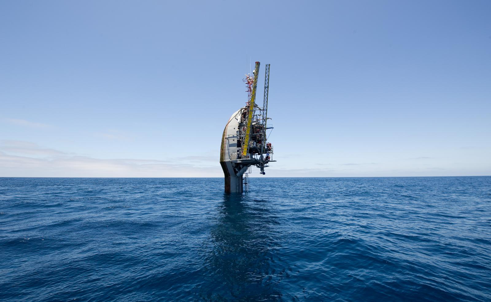 The Floating Instrument Platform, or FLIP, is partially submerged in the Pacific Ocean. the 355-foot research vessel, owned by the Office of Naval Research (ONR) and operated by the Marine Physical Laboratory at Scripps Institution of Oceanography at University of California, is celebrating 50 years of operation. FLIP conducts investigations in acoustics, oceanography, meteorology and marine mammal observation. U.S. Navy photo by John F. Williams (Released) 120630-N-PO203-274