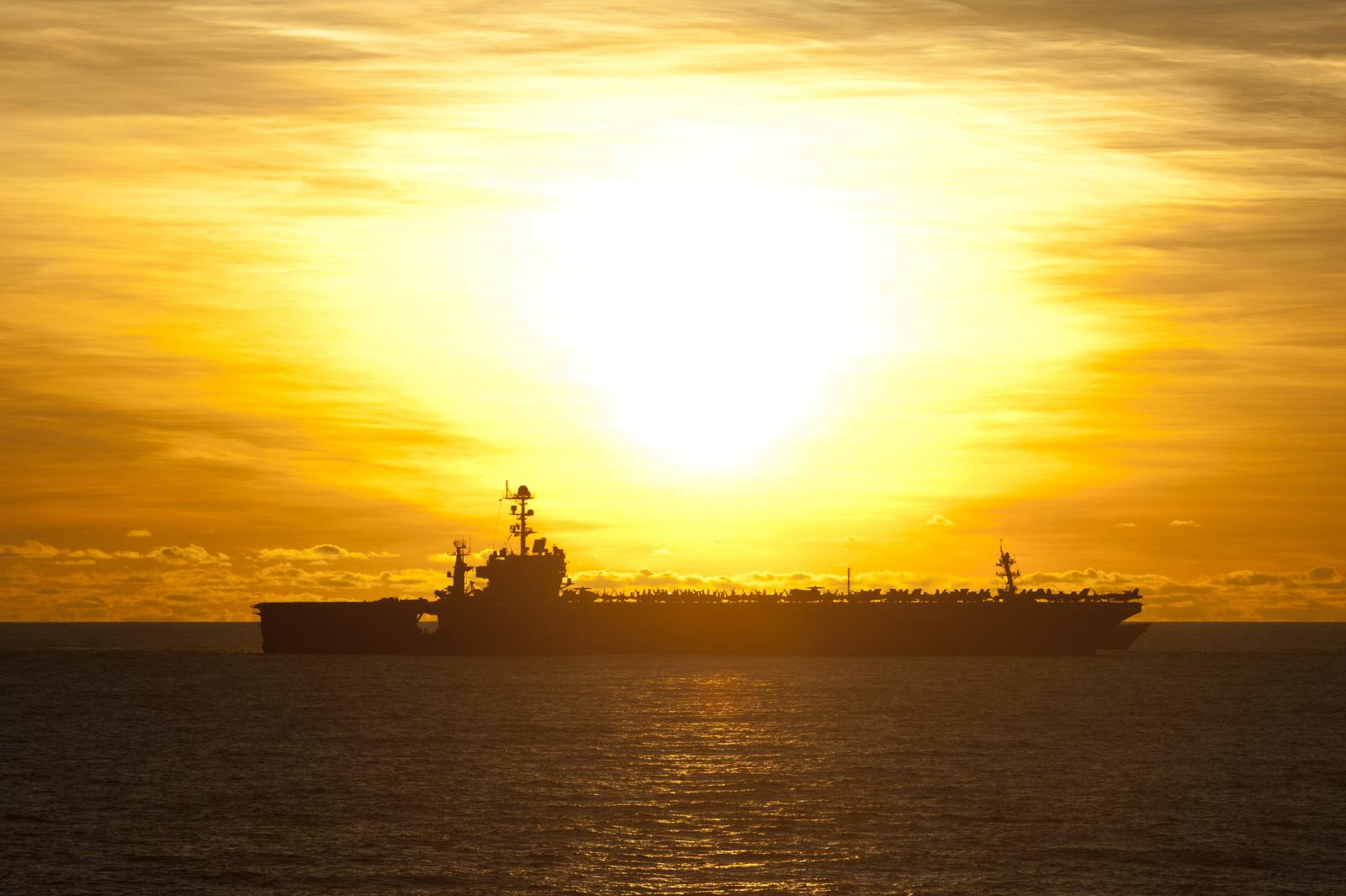 SOUTH CHINA SEA (July 8, 2012) The aircraft carrier USS George Washington (CVN 73) conducts an early morning replenishment at sea with the George Washington Strike Group. George Washington is forward deployed to Yokosuka, Japan, and is underway in the U.S. 7th Fleet area of responsibility. (U.S. Navy photo by Mass Communication Specialist 3rd Class Paul Kelly/Released)