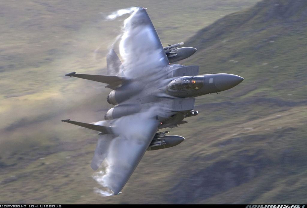 Un F-15 Eagle che vira. Notare il "fumo" che si forma sulle ali...Fantastico!