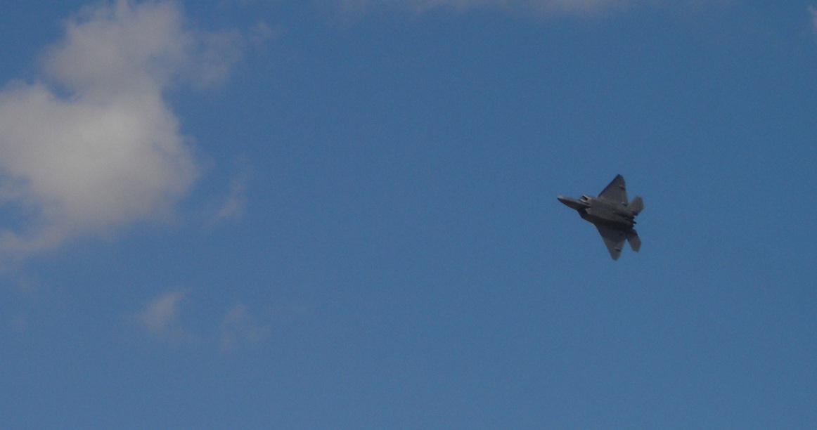 Le linee arrotondate ,la livrea "satinata" e perfettamente regolare , frutto di esigenze stealth, fanno sembrare l'F 22 un velivolo a metà strada fra un caccia ed una strana astronave extraterrestre ...