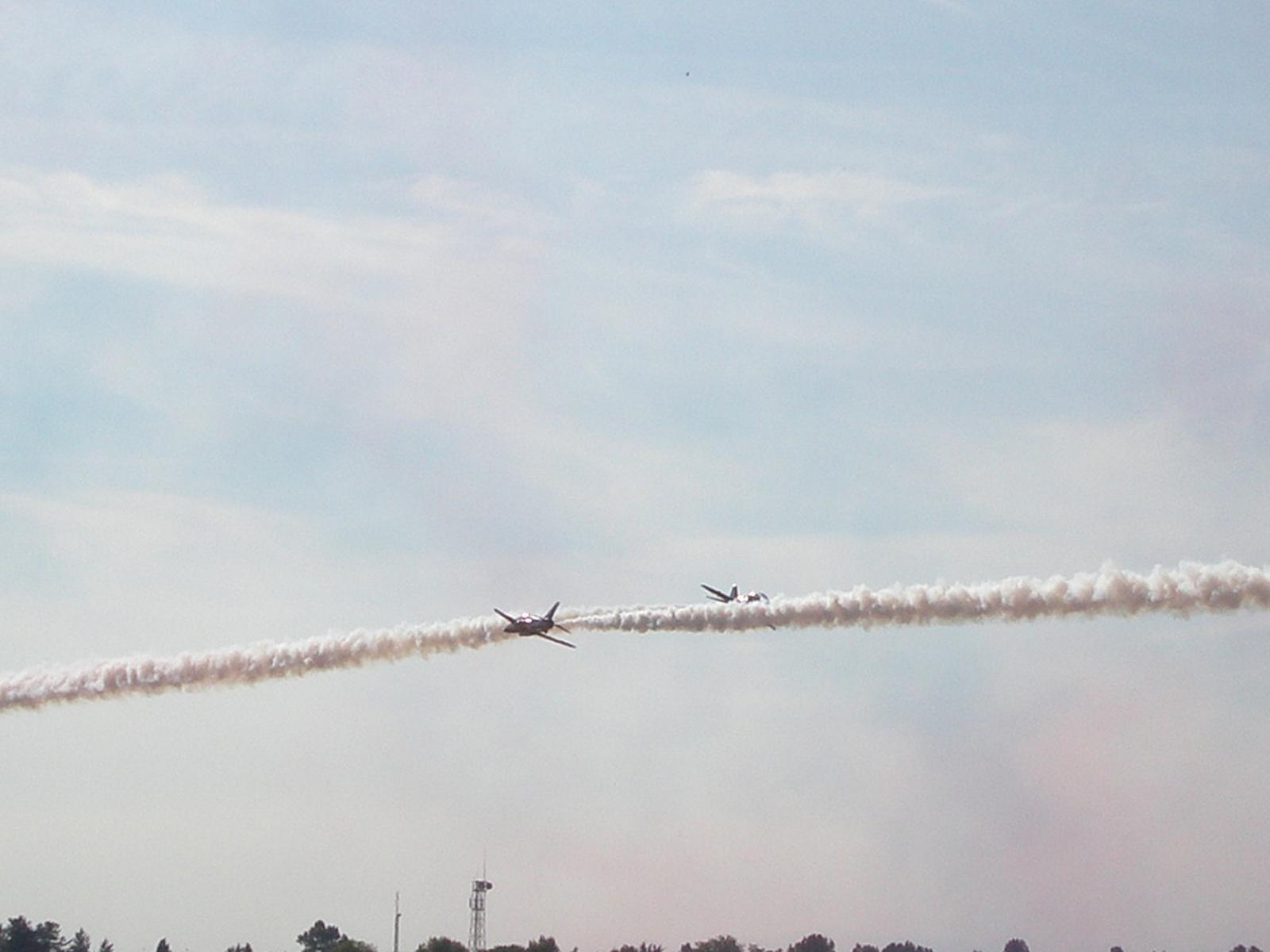 due hawk delle red arrows subito dopo l'incrocio (il secondo aereo è un po' nascosto dal fumo)