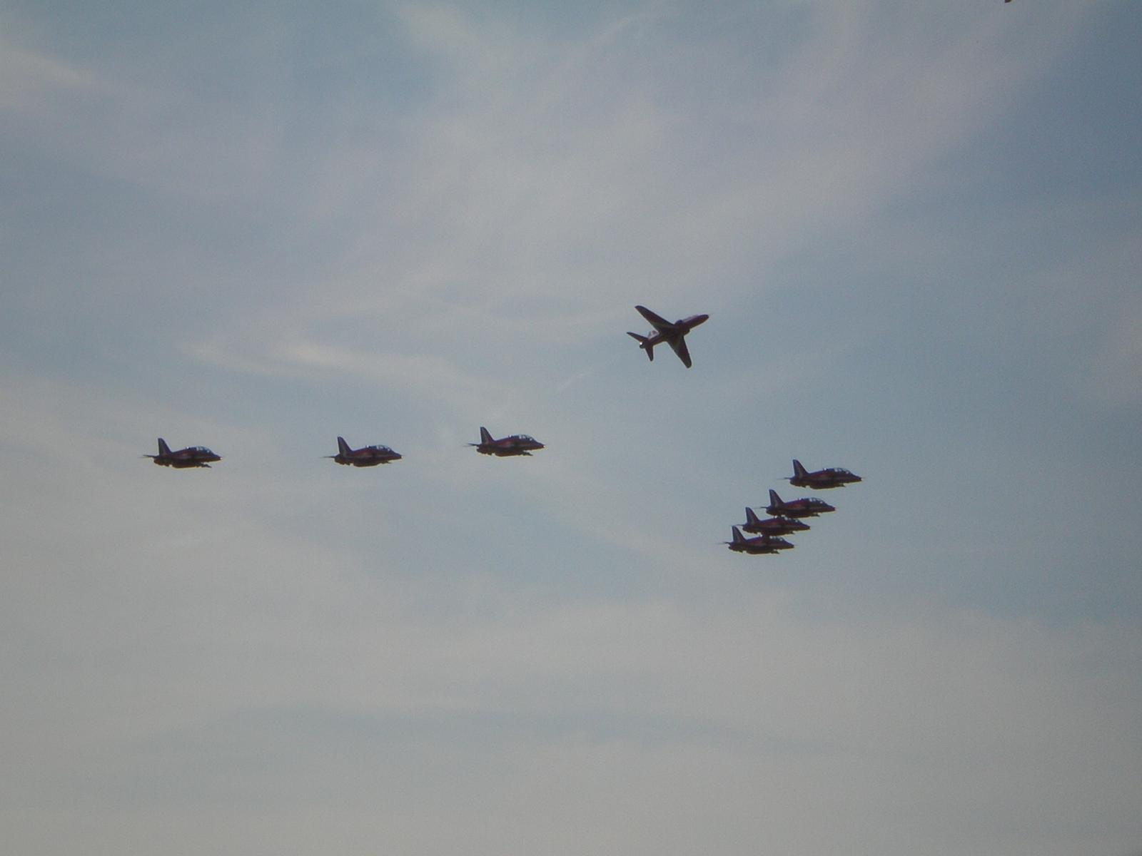 le red arrows si preparano alla manovra di atterraggio