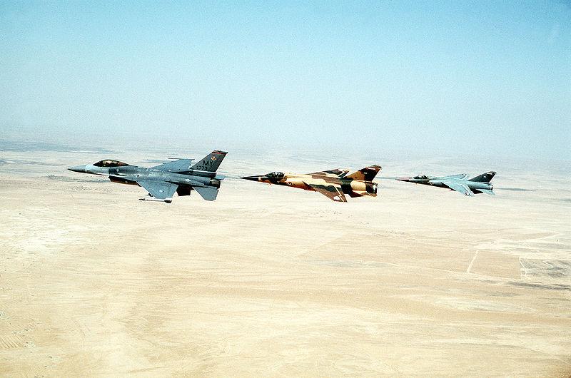 F-16 statunitensi e Mirage F1 dell'aeronautica giordana in volo