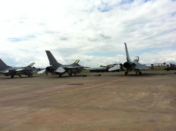20 marzo, 16:14 Pronti a decollare dalla pista della base dell'Aeronautica militare di Sigonella, Catania, sei caccia danesi F16