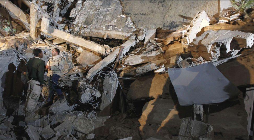 L'edificio sorgeva ad appena una cinquantina di metri dalla tenda dove il colonnello e' solito ricevere gli ospiti importanti. Alcuni giornalisti stranieri sono stati portati sul posto e un portavoce del governo di Tripoli ha spiegato che l'edificio era adibito a funzioni amministrative. A colpirlo, ha aggiunto, e' stato un missile.