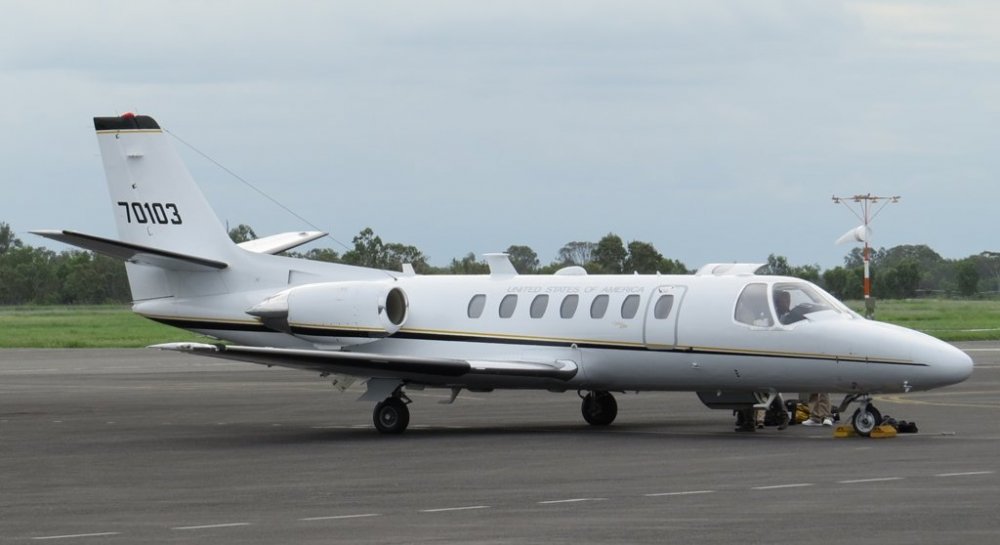 Quel Learjet non è armato. Trasporta un pod per collegamento dati e un secondo pod per guerra elettronica, non si vedono insegne di nazionalità. Probabilmente è di un ente civile che fornisce aerei per addestramento alle forze americane. Eccolo, la didascalia recita L-3 communications, un ente che fornisce, tra le altre cose, sistemi elettronici difensivi. Al contrario di questo, la cui scritta, appena visibile, recita United States of America: