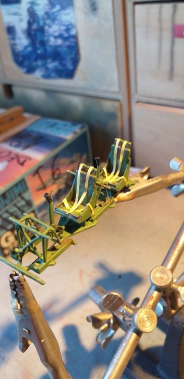 Eccomi di nuovo a voi (con cadenza pluriennale). In questo periodo di arresti domiciliari forzati mi è saltato in mente di aprire uno scatolone del mio compianto Papà (ex maresciallo A.M.I.). Ne è venuto fuori un sacco di libri (radar, elettrotecnica, manutenzione apparati radio, giornalini della truppa, ecc). Ovviamente anche tante foto dell'epoca (anni 60/70) e dulcis in fundo alcune "scatole" alquanto vintage. Una di queste è (o meglio era) un T6 texan Monogram datata 1979. La scintilla è scoccata subito. Vista la foto e visto il modello è stato automatico riprodurre proprio quello. non ci sono parti aftermarket anche perché con i negozi chiusi n'do vado?! Autocostruzione e pezzi di recupero. È in avanzato stato di costruzione (manca poco x finire). Ciao Papà