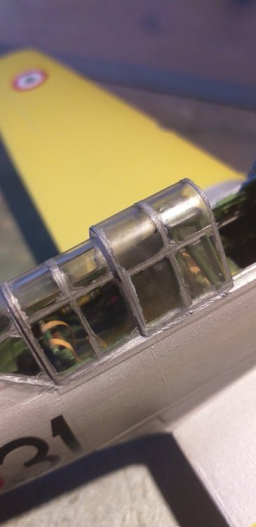 Buongiorno a tutti e buona Pasquetta. Il T6 ha ricevuto coccarde e numeri. Le due A sono un collage di decal poiché non le avevo disponibili già bell'e pronte. Oggi sporcature varie, tettuccio e trasparente finale.