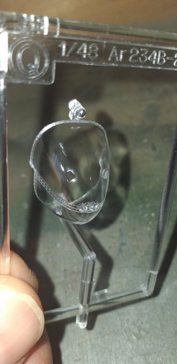 Credo proprio di essere masochista. Con quella bella bolla vetrata al posto del muso, sarà un delirio aggiungere cavetti e ammennicoli vari visibilissimi una volta chiuso tutto. Nella scatola niente da eccepire: l Hasegawa è sempre Hasegawa, tranne che..... per l'unico pezzo che in questo aereo è in bella vista...sì, purtroppo proprio la bolla anteriore che presenta la fastidiosa linea di giunzione esattamente nel mezzo. La foto mostra il muso con le sedi delle antenne del radar. Io farò la versione senza (il classico splinter Luftwaffe mi piace di più del monocromatico), ma vi garantisco che la giunzione c è su entrambi. E vabbè...tanto prima o poi avrei dovuto farlo...