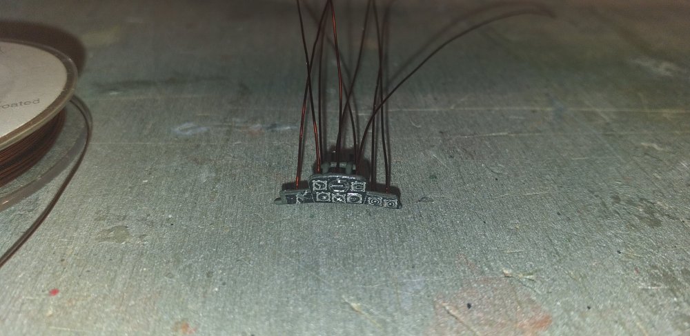 Ciao a tutti. 9 spezzoni di filo di rame da 0.3 mm, attak, lente d' ingrandimento, pinzette e la solita tanta (ma proprio tanta) pazienza. Domani piegatura e vernice. Speriamo bene....